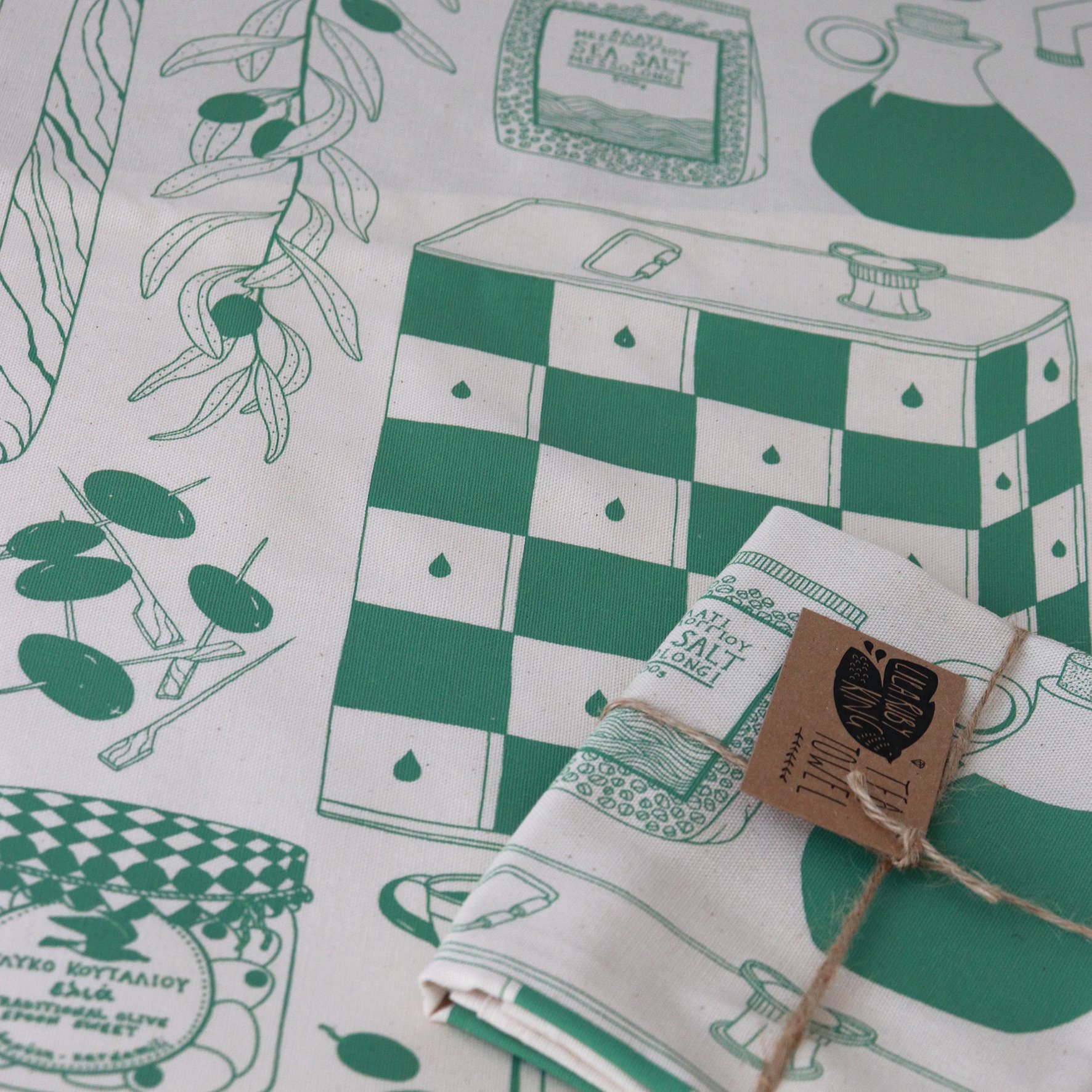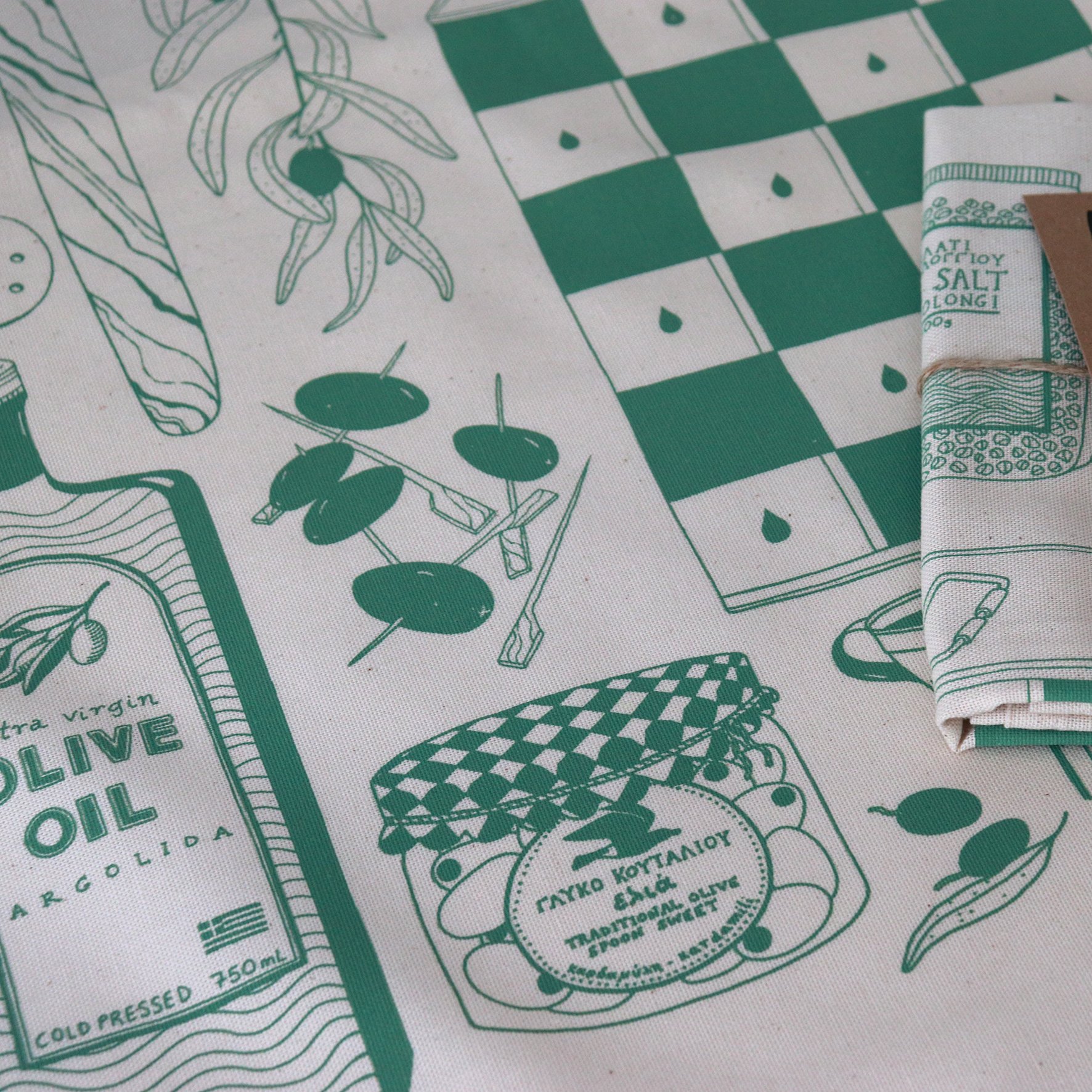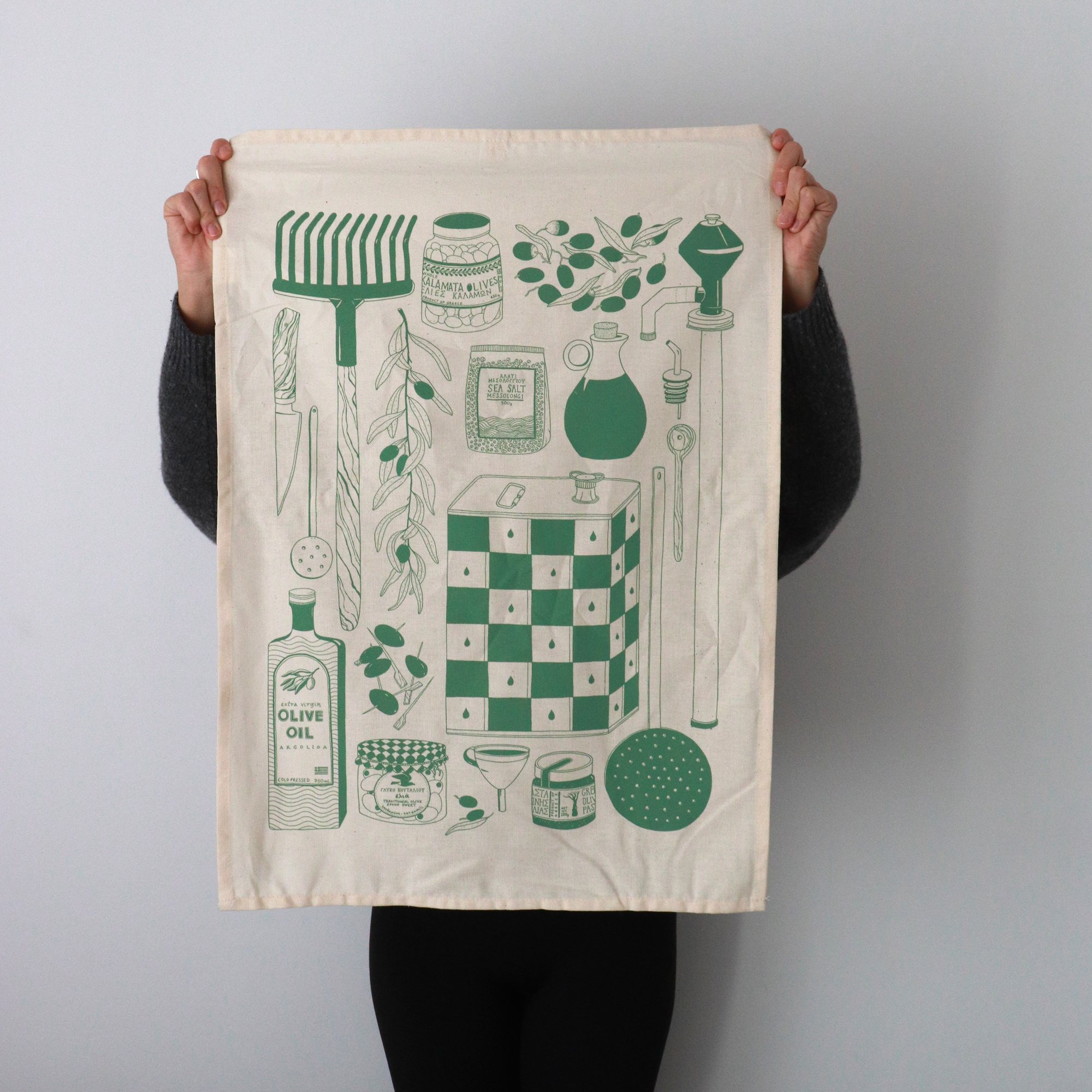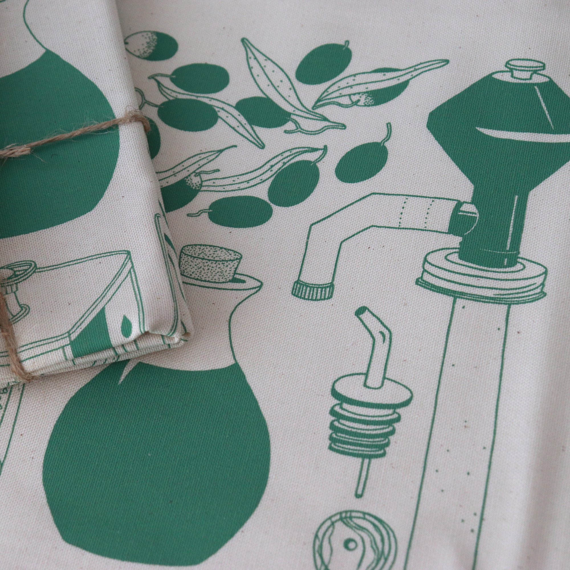 A design covering everything olive, from harvest to bottle or jar, and everything in between.