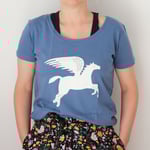 Silk screen printed Pegasus tshirt, printed in white on a blue tee.